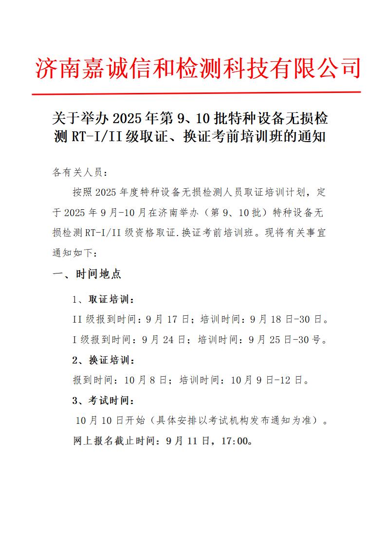 2025年第9、10批RT-I/II级取证、换证考前培训班的通知