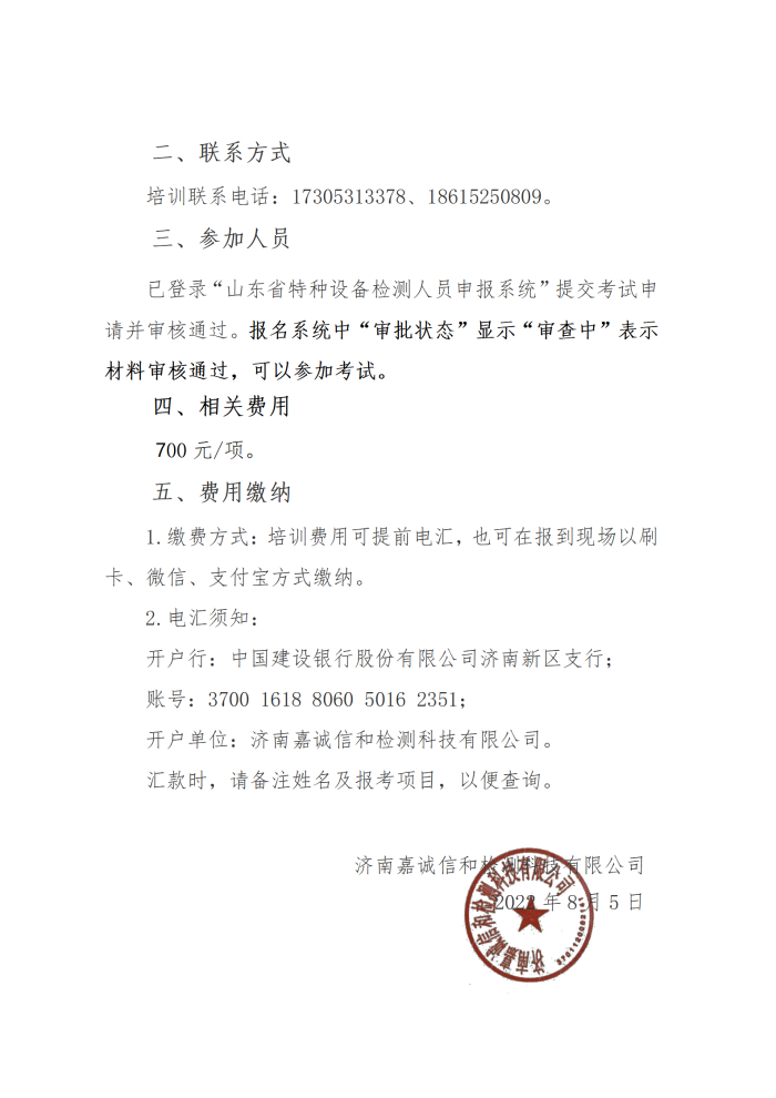 2021年度特种设备无损检测(I、II级)取/换证人员培训计划